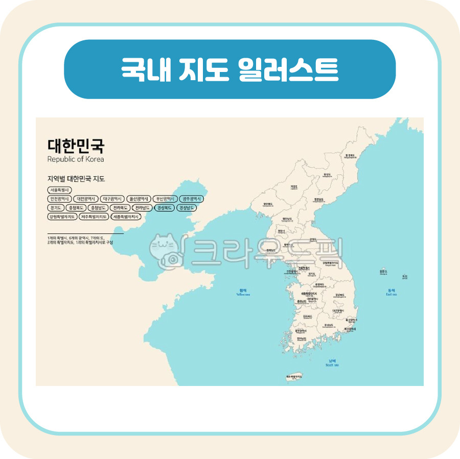 남한 전역을 시 단위로 구분해 표현한 지도 일러스트 입니다.